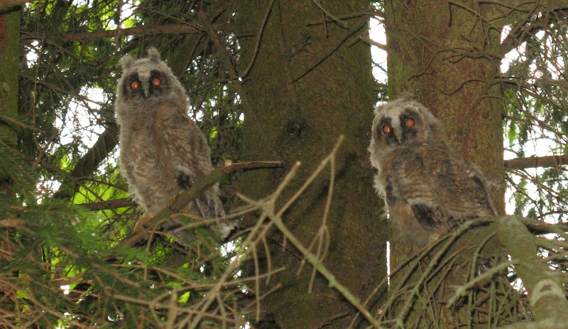 Radās te interese par parastāko pūču sugu mazuļu noteikšanu. Mēģināšu tad nu pievienot kādas manā arhīvā esošas bildes. Sākumam šo to no ausainajām. Kvalitāte ir sūdīga, bet pietiekoša lai redzētu svarīgākās pazīmes.