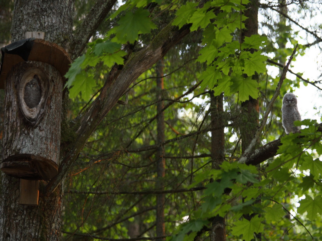 Padalīšos ar 2008. gada 19. maija meža pūču mazuļu bildēm. Būris piemājas mežā( ~150m no mājas), doba liepa, 4m virs zemes, ozolā. Bija divi mazuļi. p.s.Novērojums bija ievietots arī Dabasdatos.