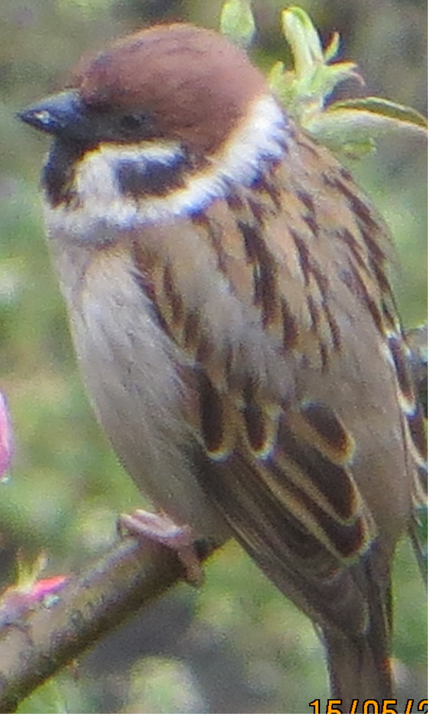 Augšējā attēlā melnā erickiņa M, apakšējā lauku zvirbulis.