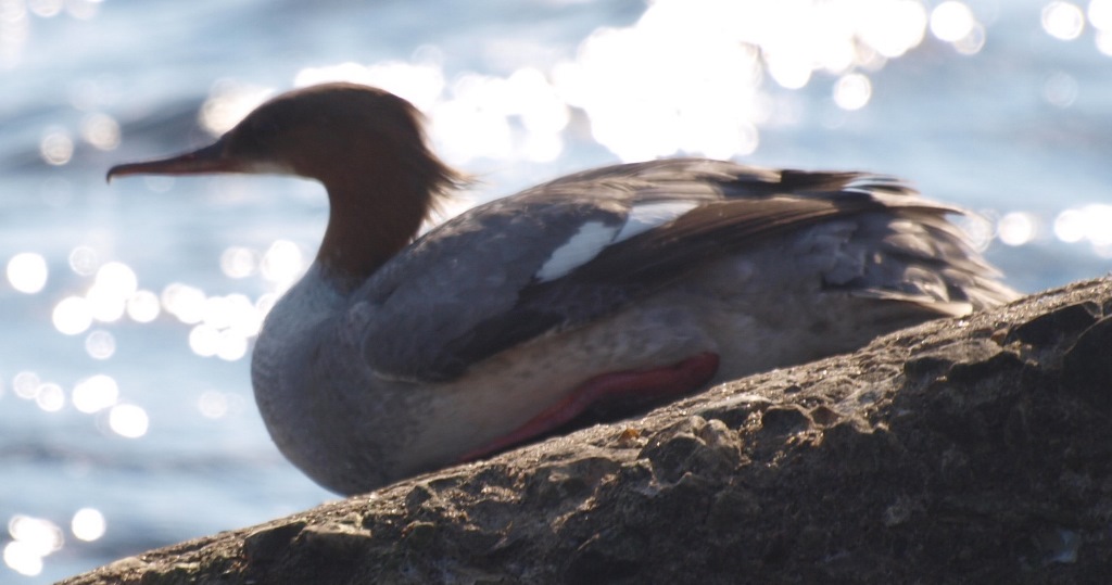 Domāju, ka tā ir lielās gauras mātīte. Krāsu pārēja uz kakla ir pietiekami krasa. Lielajai gaurai ir salīdzinoši resnāks knabja pamats, knābja gals vērsts uz leju. Tāpat lielajai gaurai ir raksturīgs balts plankums uz zoda, ko te var saskatīt. Garknābja gaurai tas ir ļoti neizteikts.
