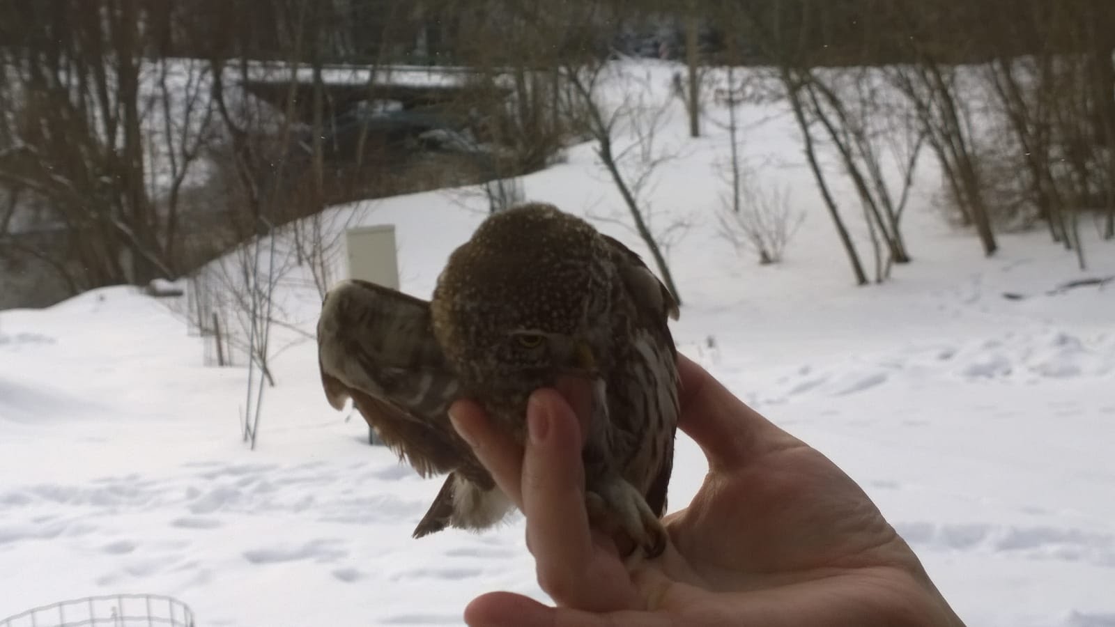 Apodziņš (Glaucidium passerinum) - Latvijas mazākā pūce. Ziemā mēdz apciemot putnu barotavas, lai medītu sīkputnus.