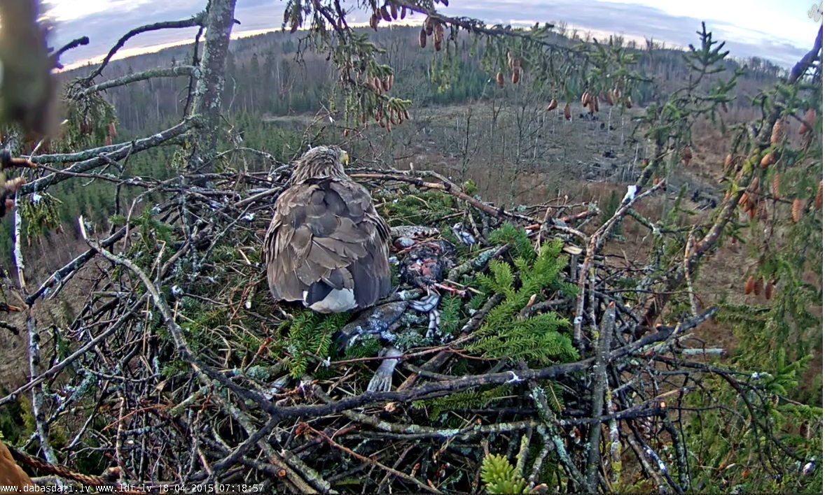 Pontu bildes rāda, ka 6.46 uz ligzdu atlidoja Roberts. Abi dažas minūtes stāv blakus (varbūt baro?) un tad Durbe 6.50 aizlido.