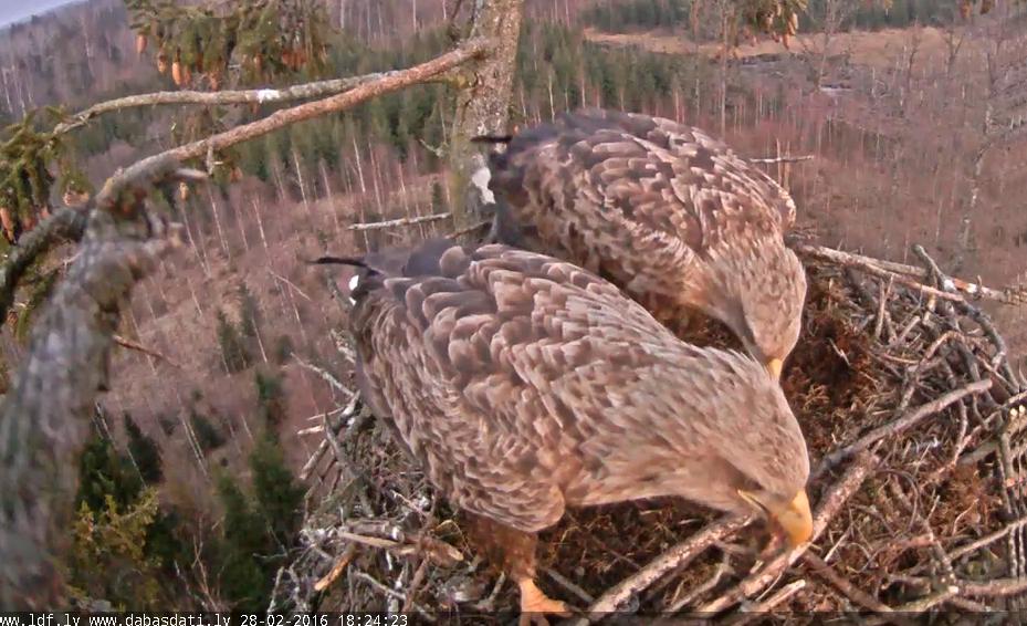 6:36 Ērgļi ir ieradušies ligzdā,bet neko nevar saskatīt--melna tumsa--abi mīcās un pīkst :o
