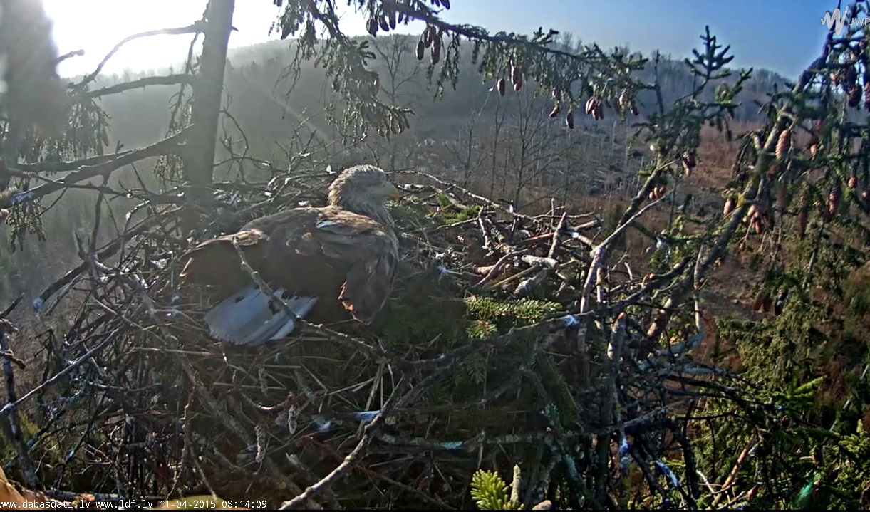 Ligzda ir daudz pūku. Liekas, ka jūras ērgļi, iestājoties siltam laikam, met ārā ziemas "pavilnu".
