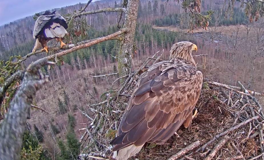 17:53 pirmais,kas aizlidoja--atgriezās--abi mīcās pa ligzdu un pīkst