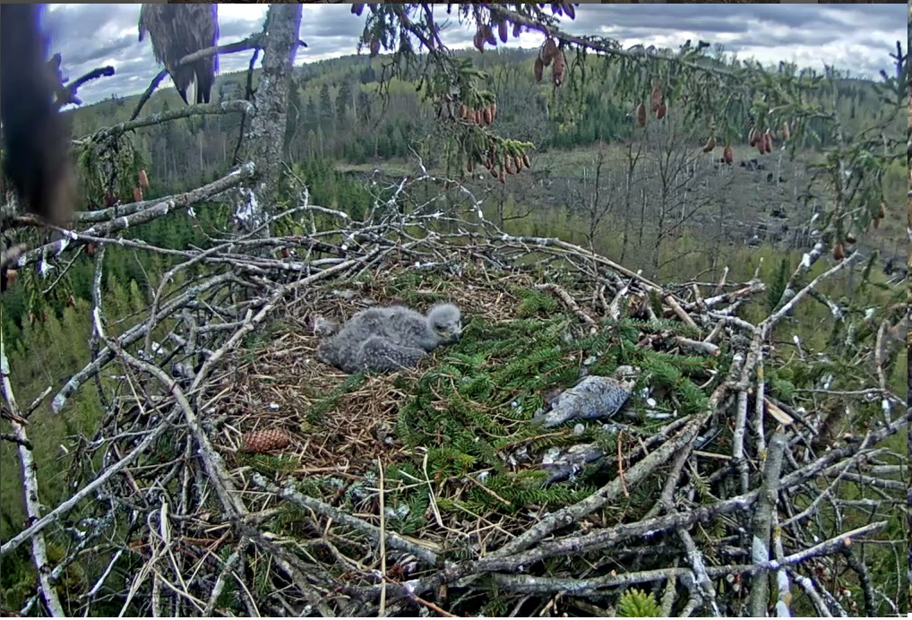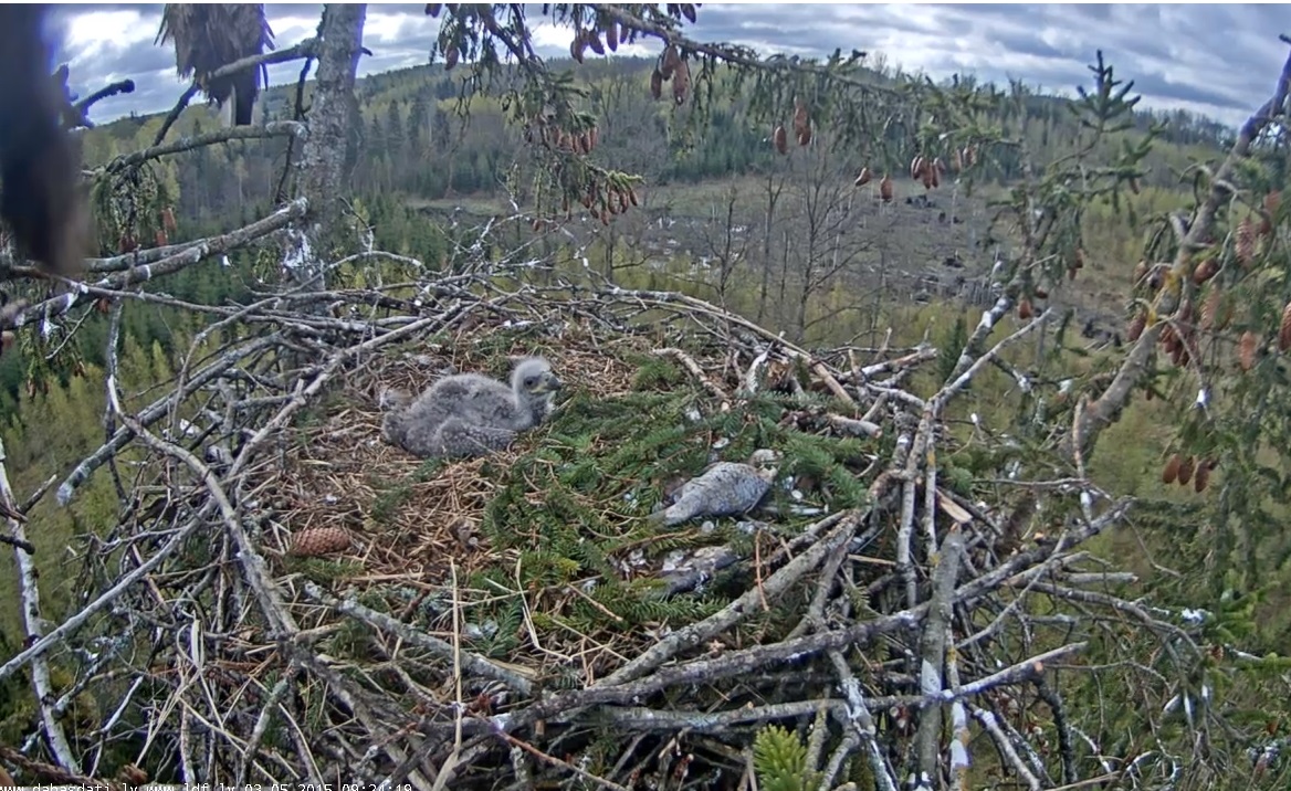20:40 mamma atpakaļ ar egļu zariņiem. mazais ielien azotē.Durbe izpurina pēļus, ar knābi pamatīgi uzirdina ligzdas bodi, lai bērnam mīkstāka gulēšana.