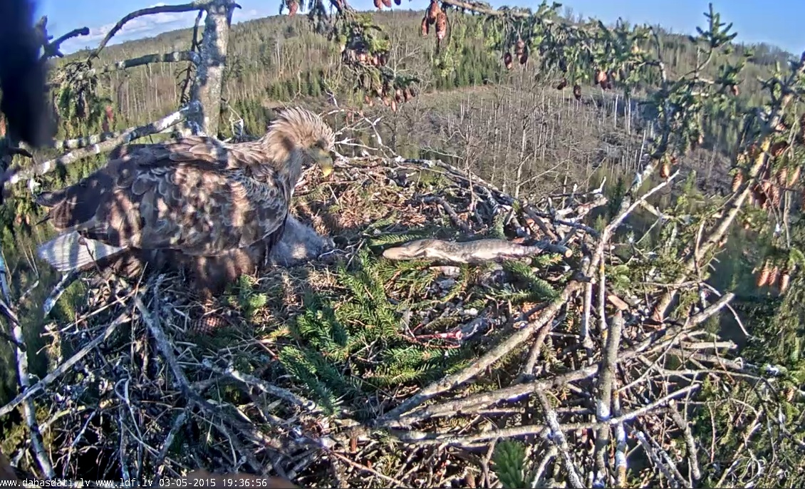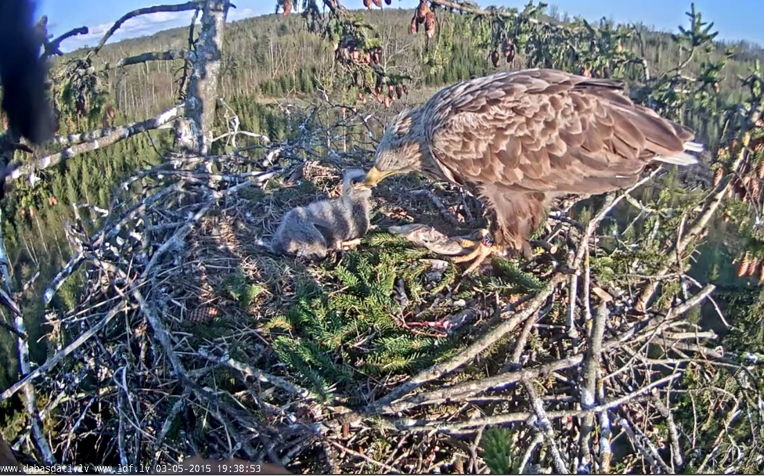 Un tad kad palika viens un bija iegriezies ar dibenu pret kameru, tad spēlējās ar ērgļa spalvu, kas mētājās knābja galā. :D