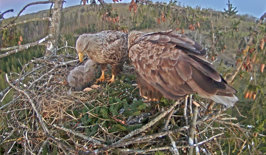 Ligzdā parādās arvien vairāk egļu zariņu. Nez, kam tie?