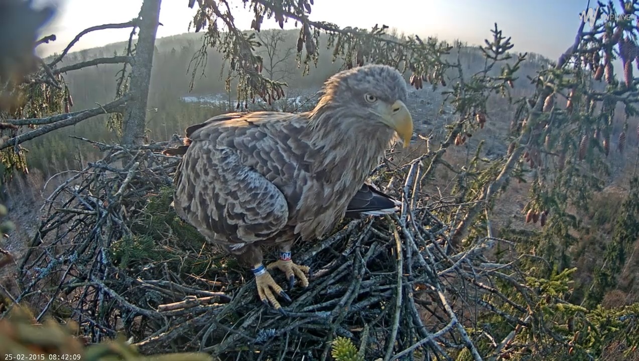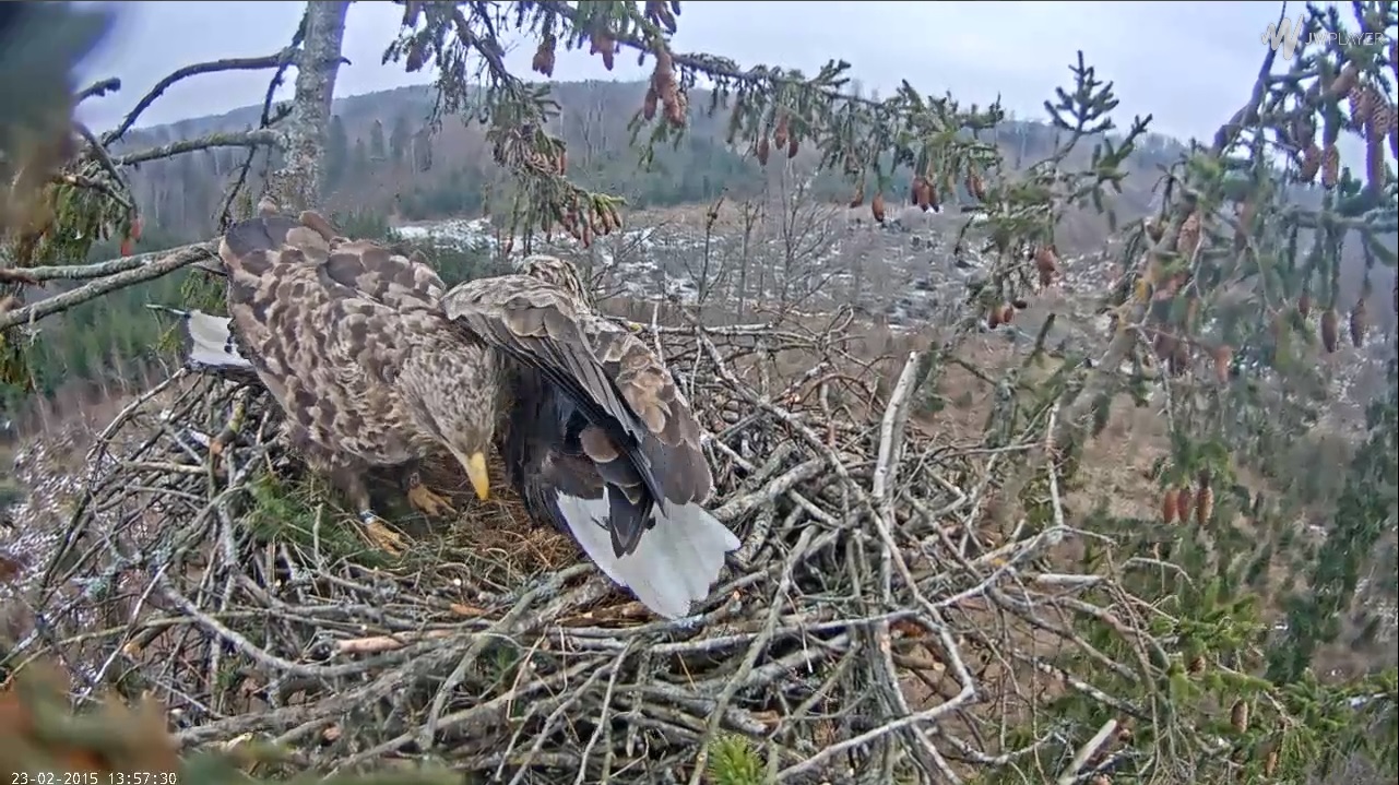 Kādu pusstundu kamera nedarbojās, bet nu atkal strādā un arī ērgļi ir ligzdā (11.42)