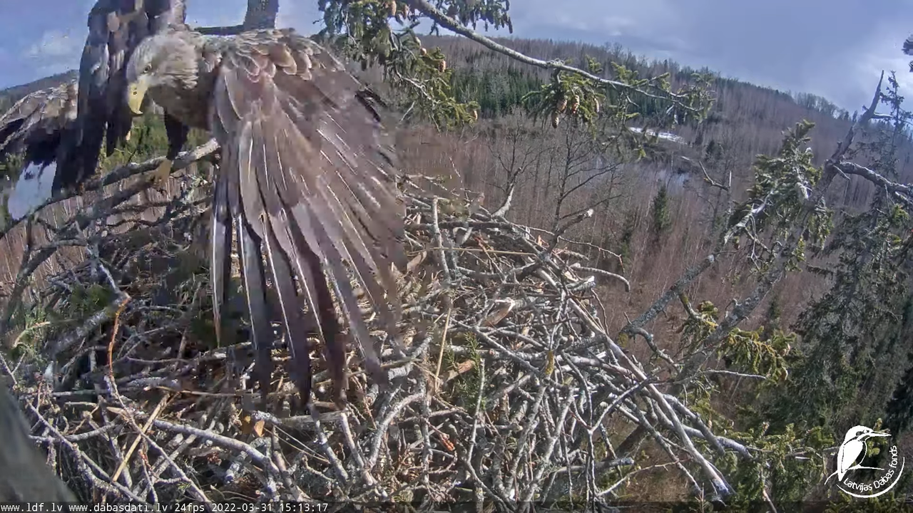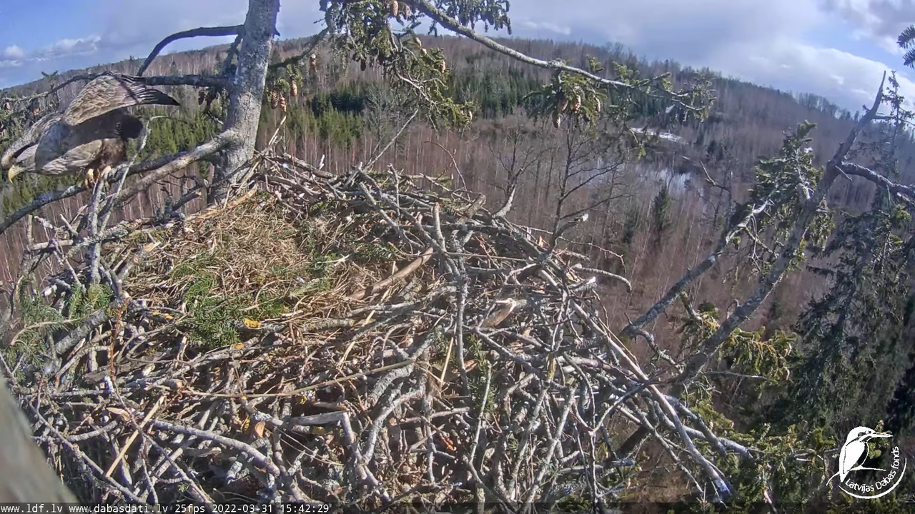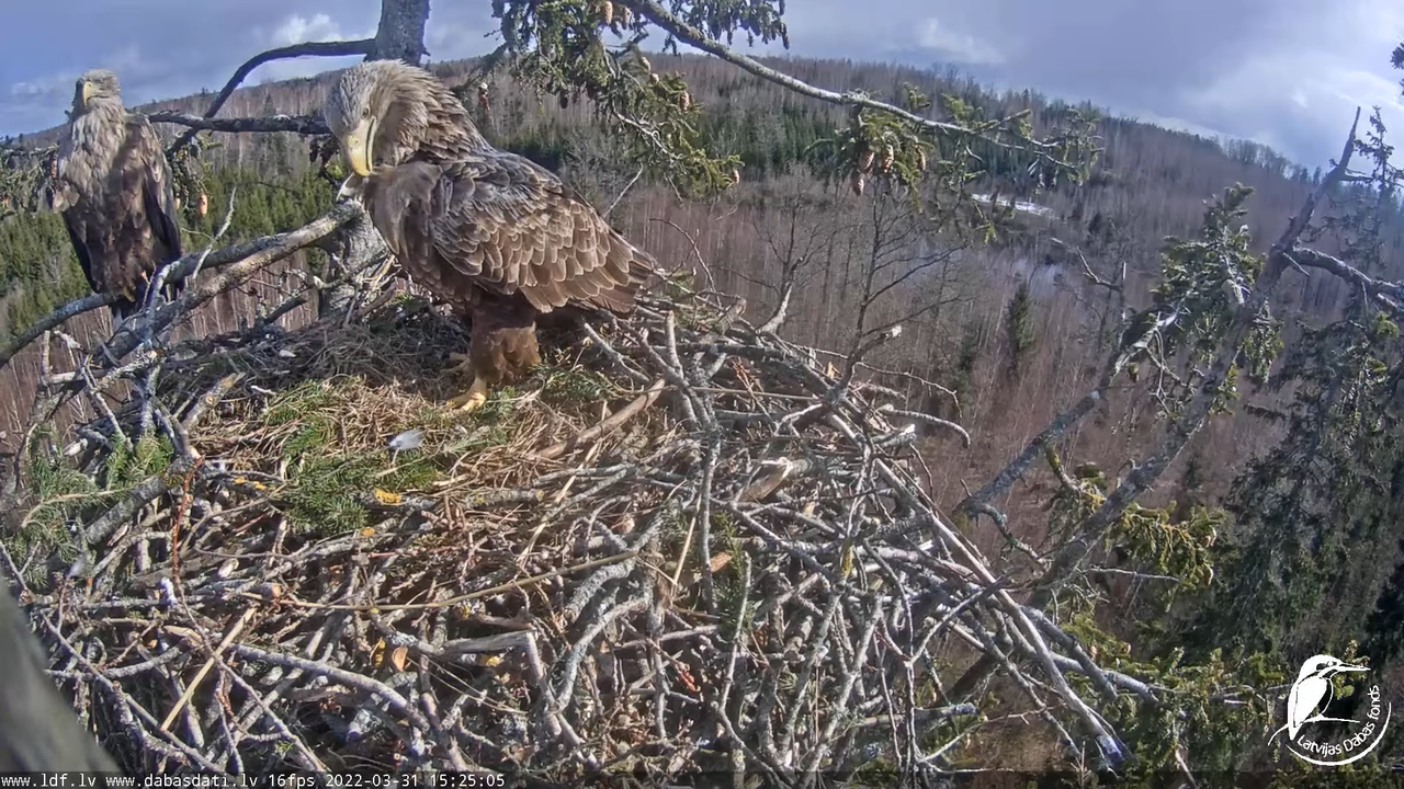 11:00 laika apstākļi Durbes pusē šorīt pavasarīgi/ziemīgi jauki-nokrišņu un vēja nav-nedaudz caur mākoņiem parādās arī saulīte-ērgļiem patīk,ne par velti visu rītu dzīvojās pa ligzdu!
