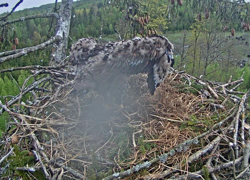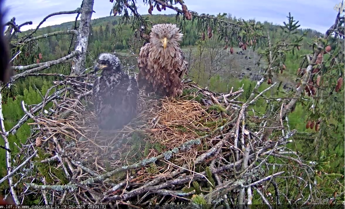 Vērotāja, cik tagad apmēram Durbertiņš sver? Grūti iedomāties. Bieži ir grūti sev atgādināt cik milzigi ir abi vecāki, un pat ligzda, skatoties tik bieži kameras pārraidijumu!