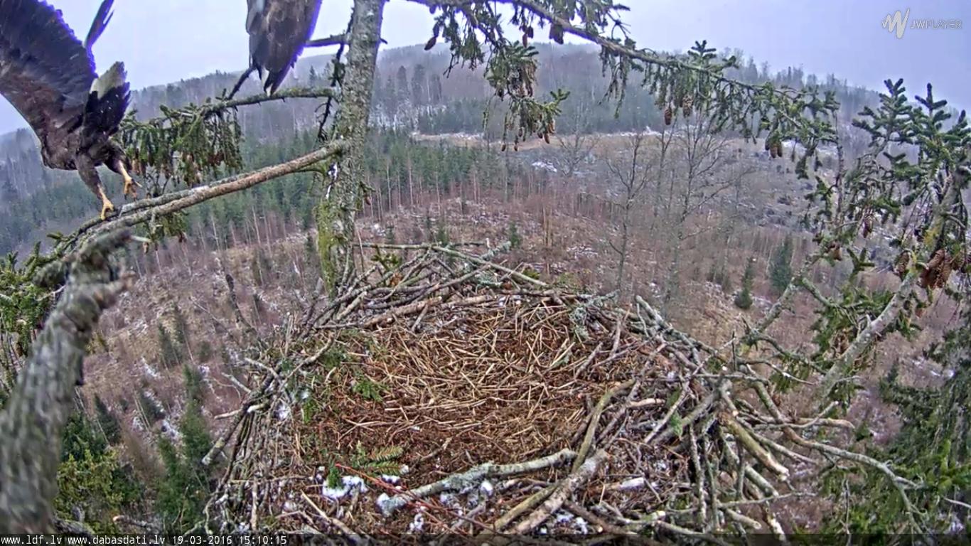 14:38 tagad meitene augšējā zarā un šis gribēja ieknābt astes spalvās,bet nesanāca---laikam vēl bišku par jaunu ligzdošanai,nu laiks rādīs :P