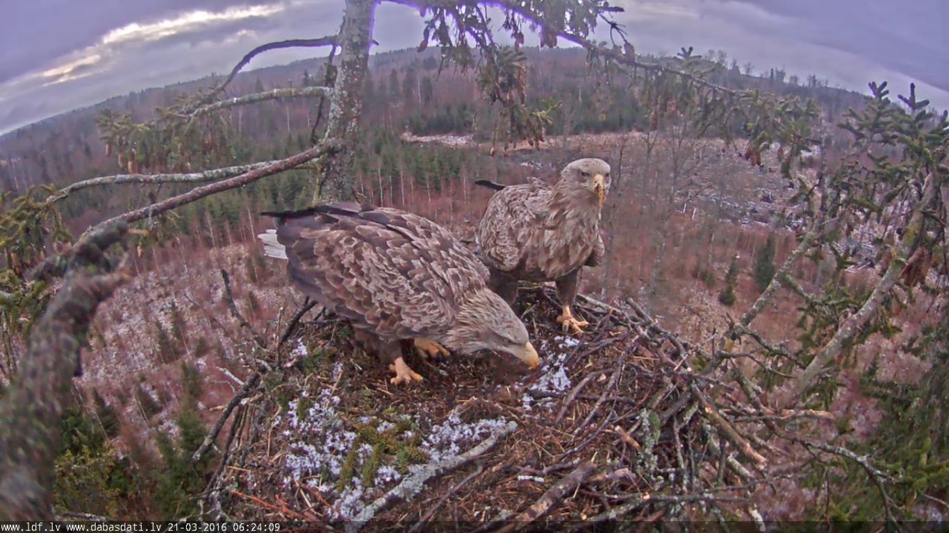 19:10 sagaidījām abus ērgļus ligzdā pēc garā dienas cēliena.