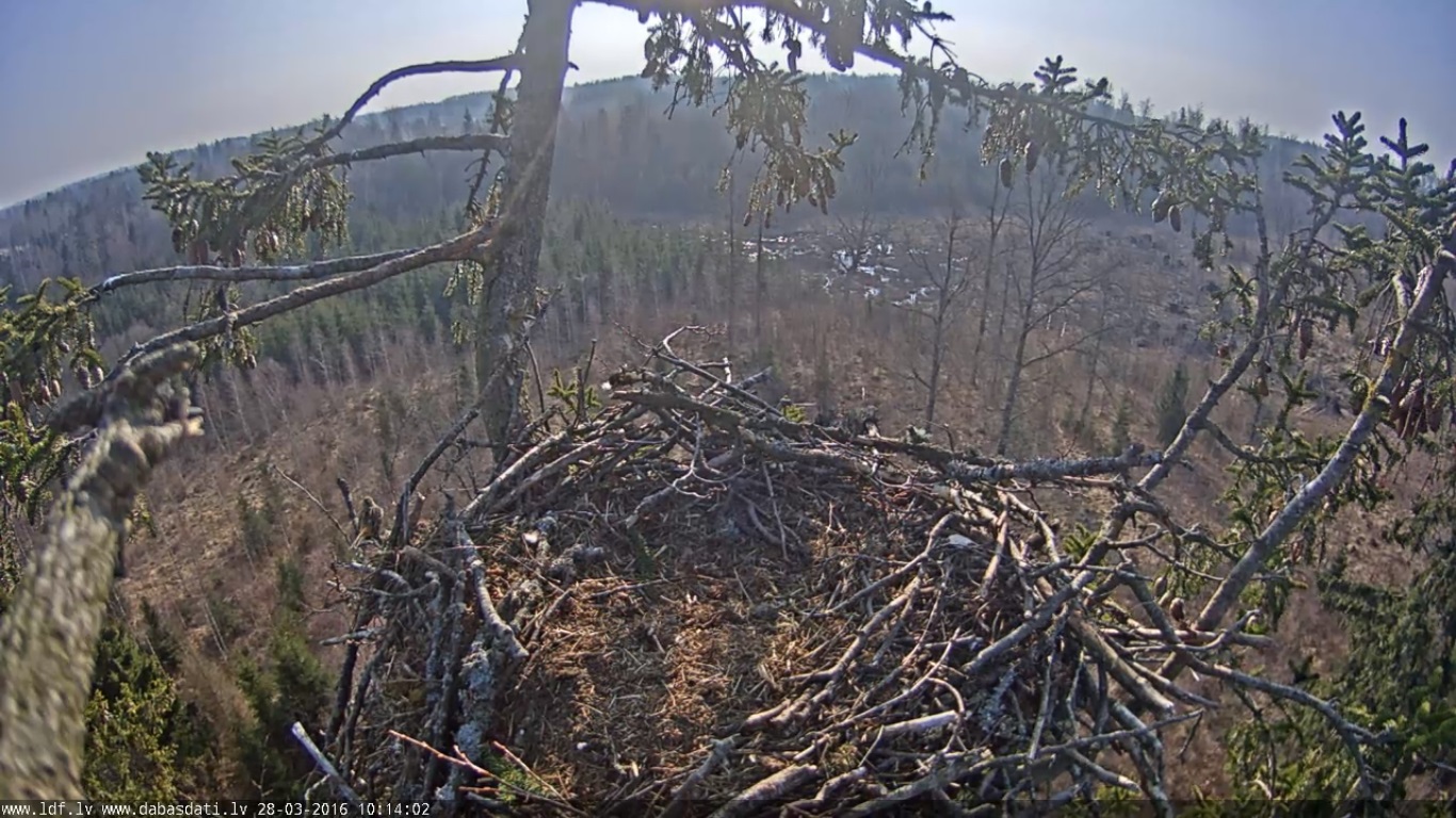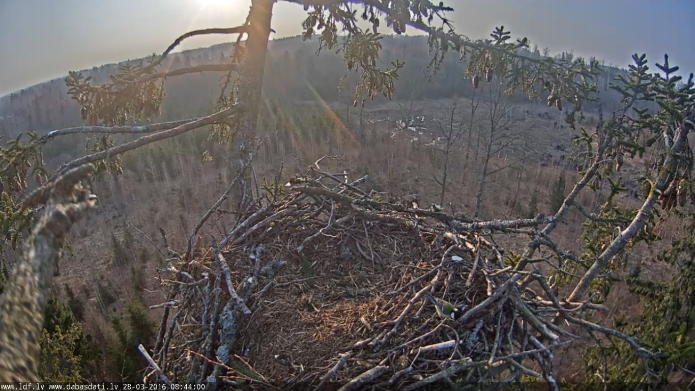 mega, tā kā skatījos šo brīdi, uzreiz atradu kreisajā pusē no ligzdas uz viena no ligzdas zariem.