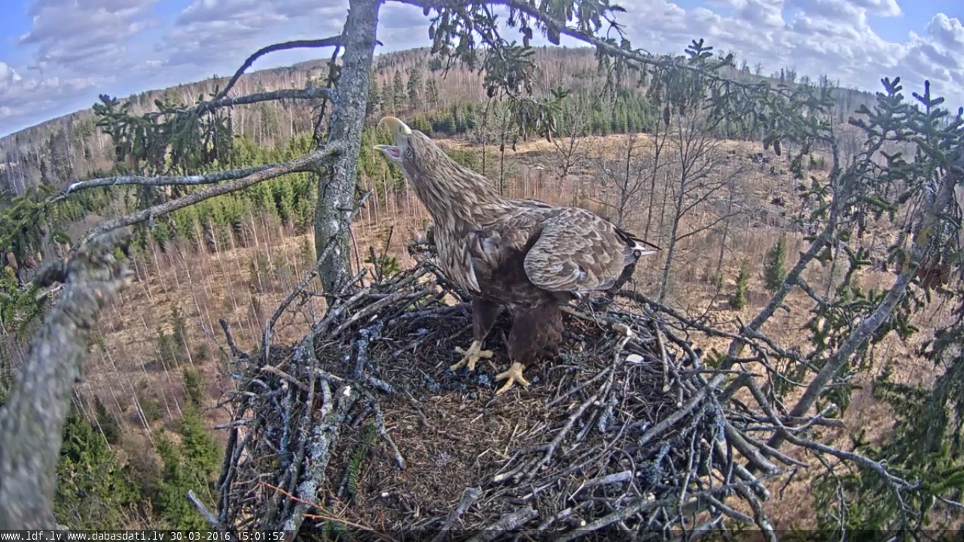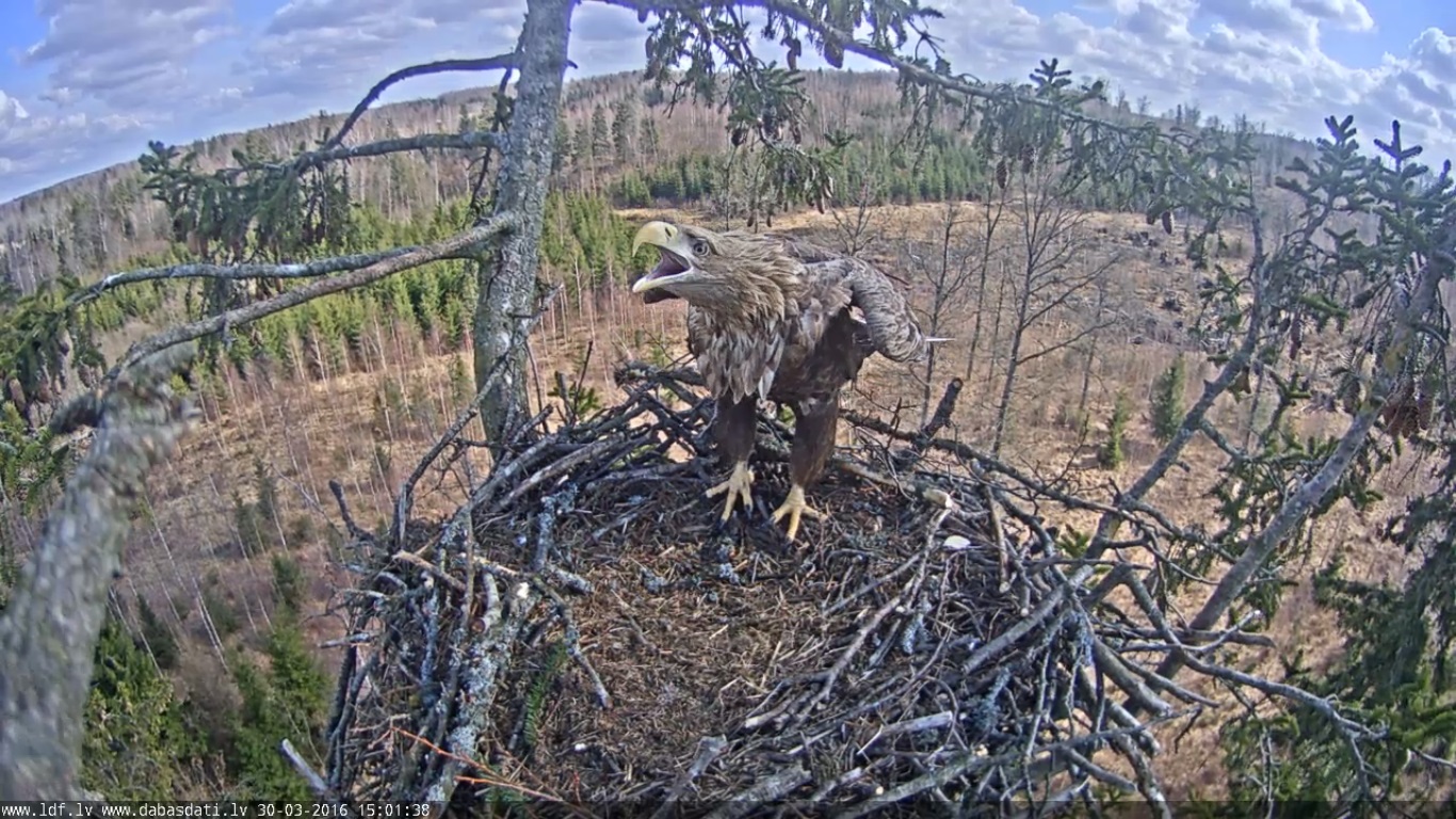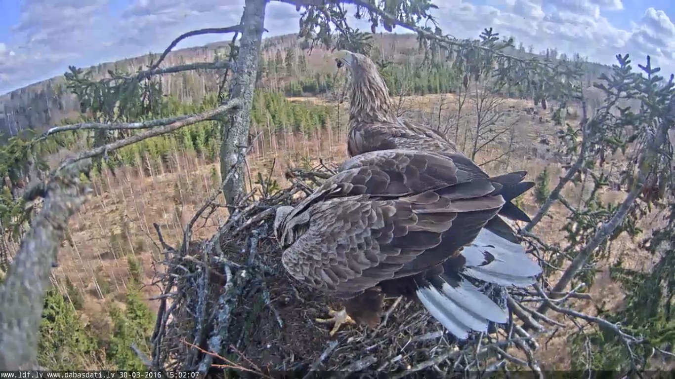 15:57-16:00 viens no ērgļiem bija ligzdā,ja neredz kājas vai asti--nezin,kurš tas bija :o