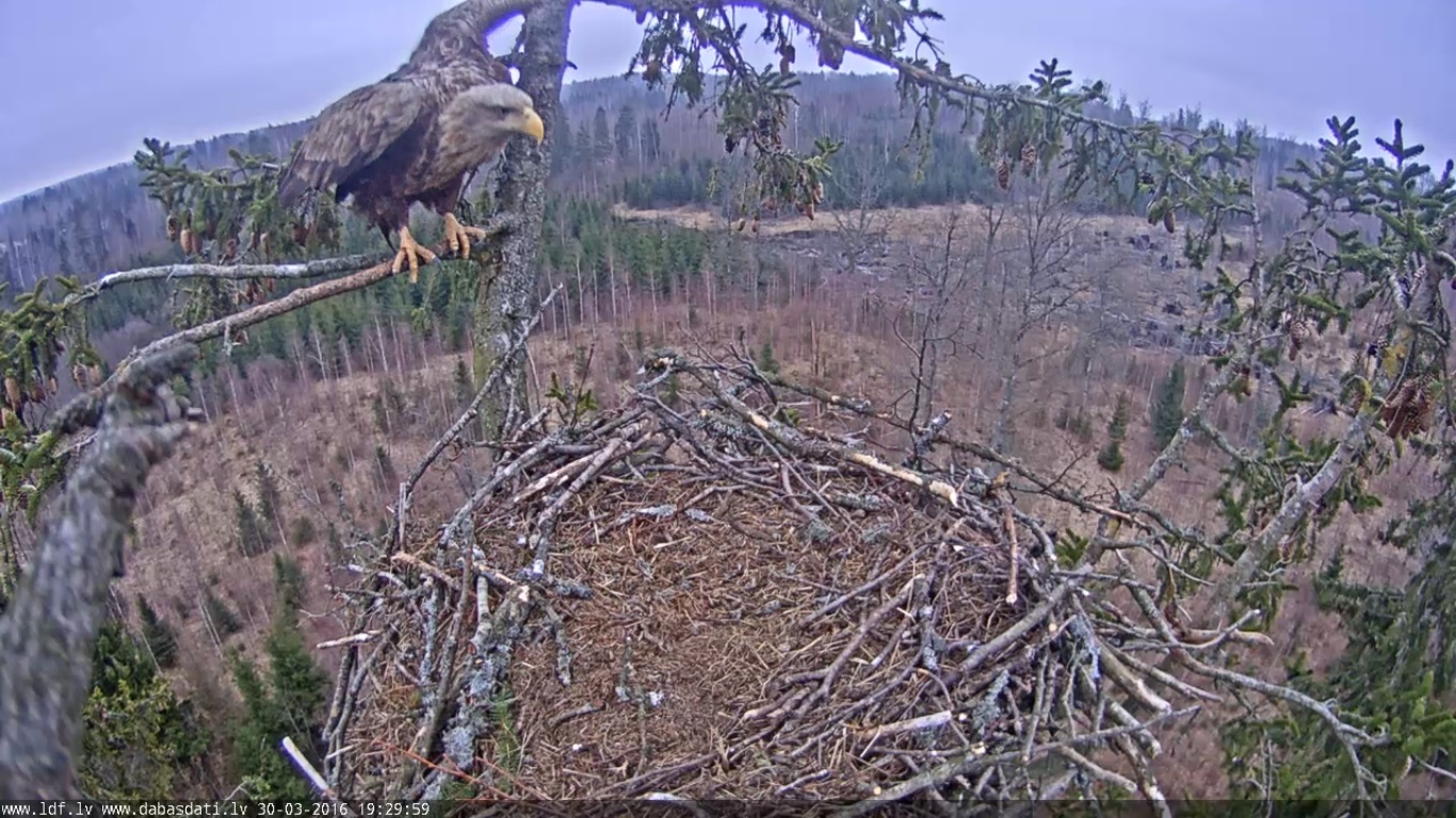 mega2 wrote:15:57-16:00 viens no ērgļiem bija ligzdā,ja neredz kājas vai asti--nezin,kurš tas bija :o