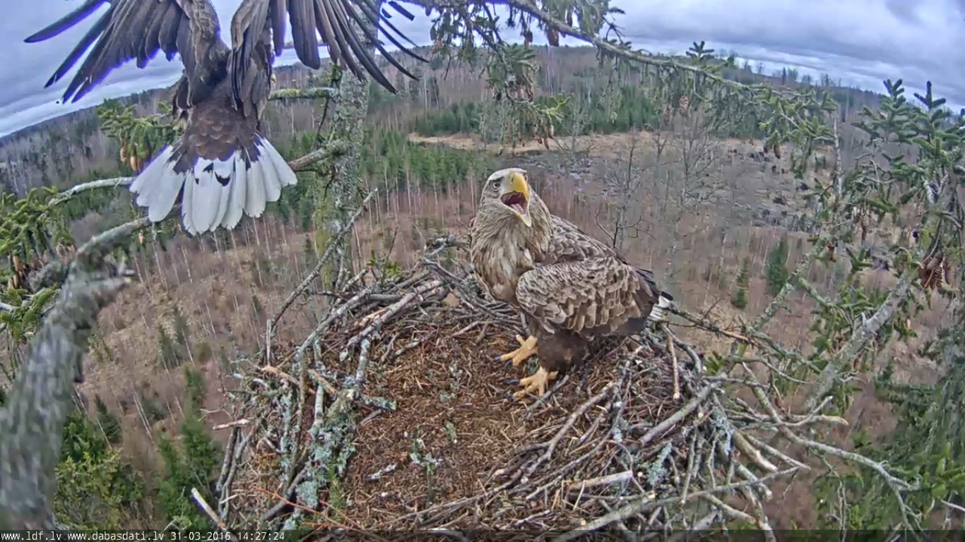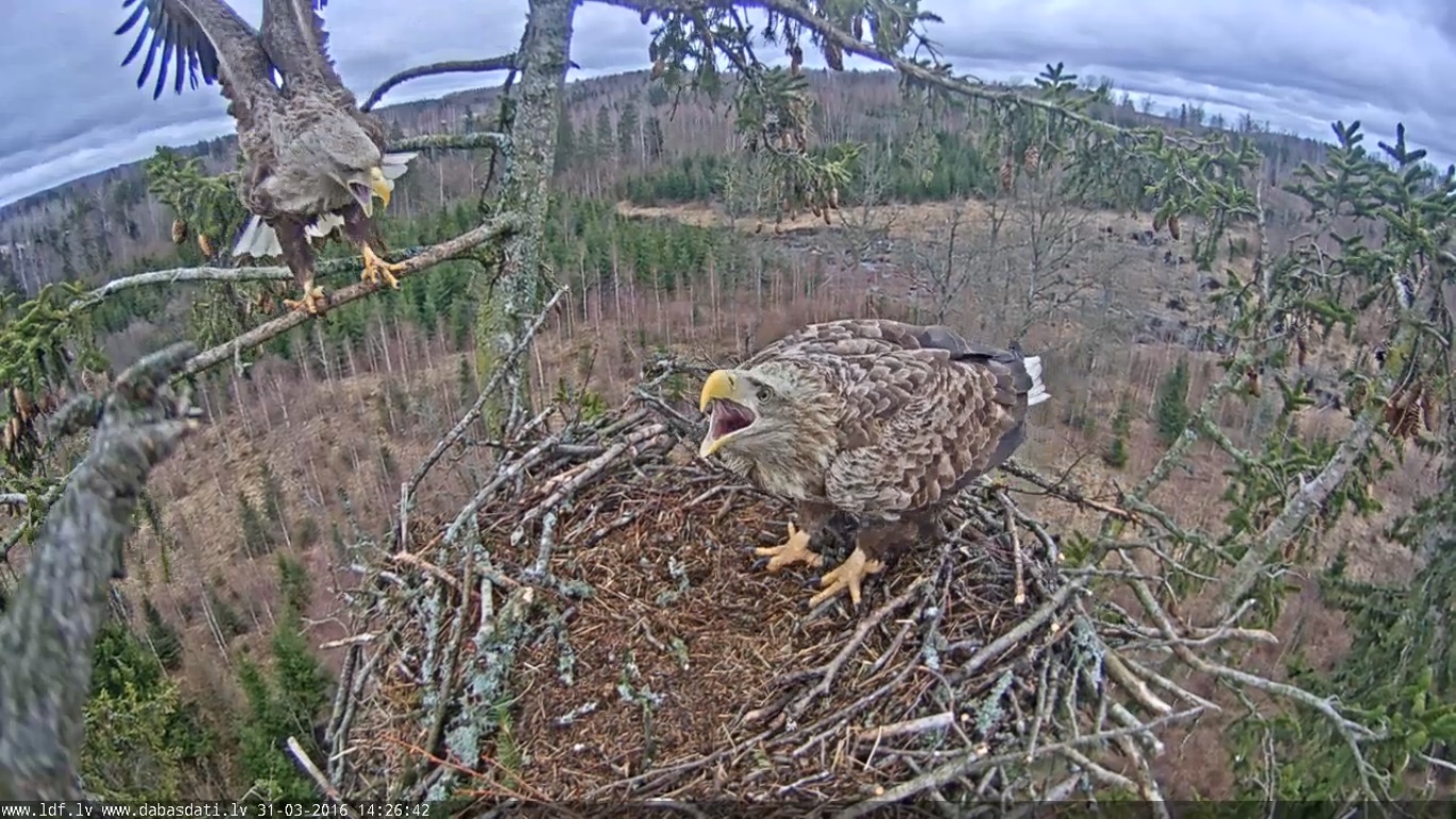 ir es sapratu pareizi: ērgļi nenāca pie ligzdas vispār šorīt? viņi tikai dziedāja tuvumā?