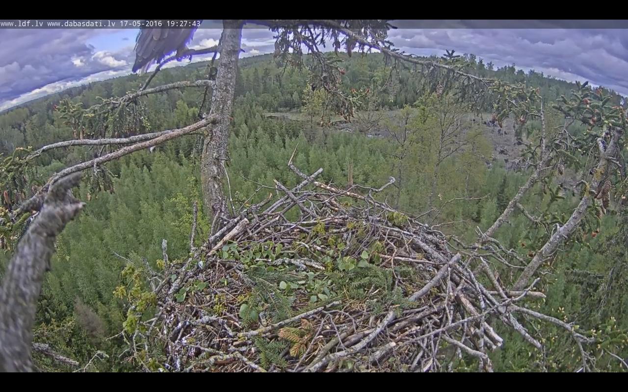 19:32 Draudziņš,kurš tiešām bija augšstāvā,aizlidoja līdz ozolam un lidojumā nošķīla zaru un atnesa uz ligzdu(vismaz es ceru,ka blakus zibens saspertajam Durbes un Roberta ozolam,tie pārējie atlikušie koki arī ir ozoli),tad viņi maģiski pievelk ērgļus