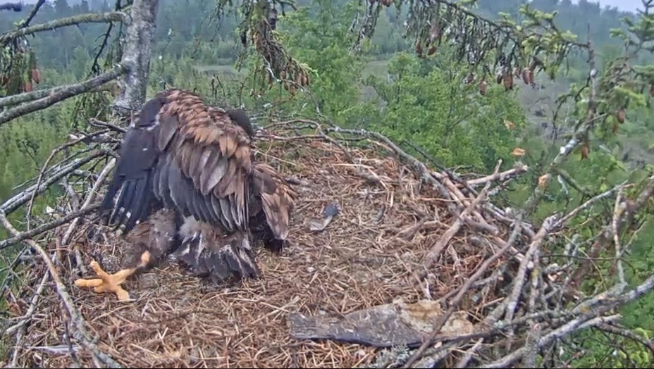 Nu beidzot abi ir sapratuši, ka - lai arī ir pagājušas 2 nedēļas un ligzdā vairs nav mazulis, bet liels ērglēns, tik un tā šajā vietā viņi pārtrauca - viens otru knibinot, sīcot un knakšķinot, barojot un čubinot... tik ļoti viņam gribas mammai pieskarties...