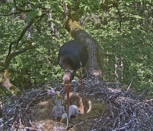 Jālūdz kas līdzīgs atkal - šodien 13:37:45-13:40:40 ārkārtīgi interesanta barība - zalktis (un cāļi cīnās, kurš to dabūs, bet beigās T pats apēd) un vismaz 2, iespējams, 3 nēģi. Zalktis bija zināms, kā barības objekts, nēģi "teorētiski" jā, bet pierādījumu tam nebija. Tagad ir - būtu labi, ja tas paliktu arī kā sižetiņš, ko var parādīt / apskatīt atsevišķi. Vērotāji ar makšķernieku pieredzi varētu mēģināt pateikt, kas varētu būt reņģītēm līdzīgās zivtiņas. Var mēģināt novērtēt arī zalkša garumu - T knābis ir apmēram 19 cm garš; zalktis varētu būt ap 50 cm?