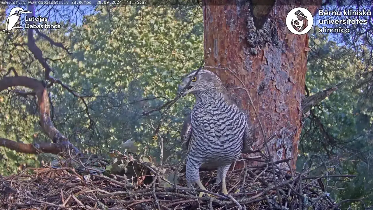 7:32 Vanadziņš atkal atlido padarboties pa ligzdu.