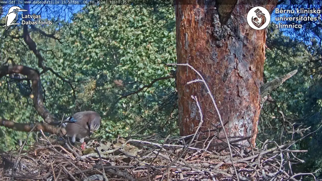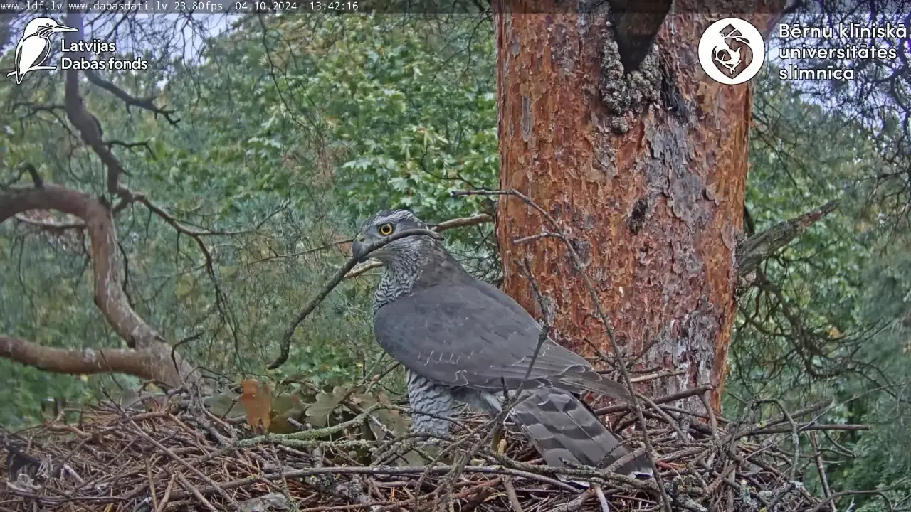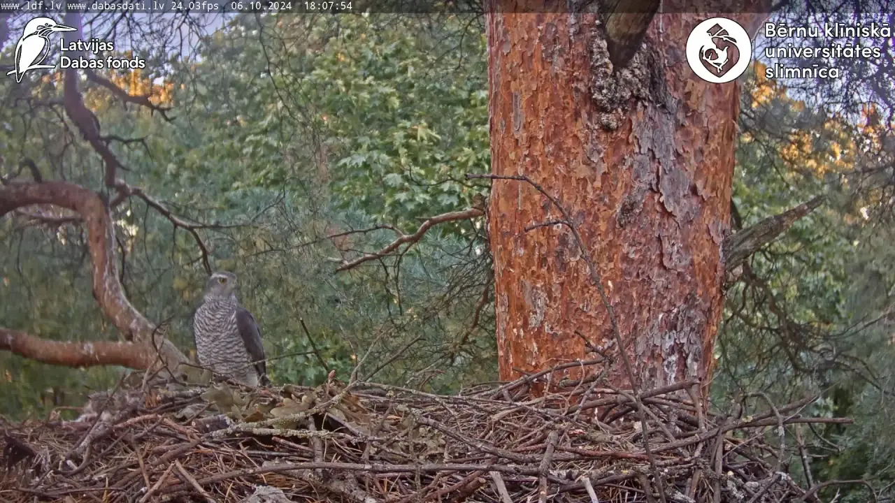 15:47 izskatās,ka ligzdas saimniece Pērle(?) ir atgriezusies teritorijā -atlidoja uz ligzdu ar nomedītu balodi-uz kreisās kājas metāla gredzens,uz labās gredzena nav-bet ieskatoties uzmanīgāk,tās svītras nav gluži tik līdzenas,kā būtu jābūt pilnīgi pieaugušam putnam,šis vairāk izskatās pēc tāda,kas tikko nomainījis ''ancuku'' uz pieaugušo,jo kā rakstīja @Vērotāja iepriekšējā komentā-