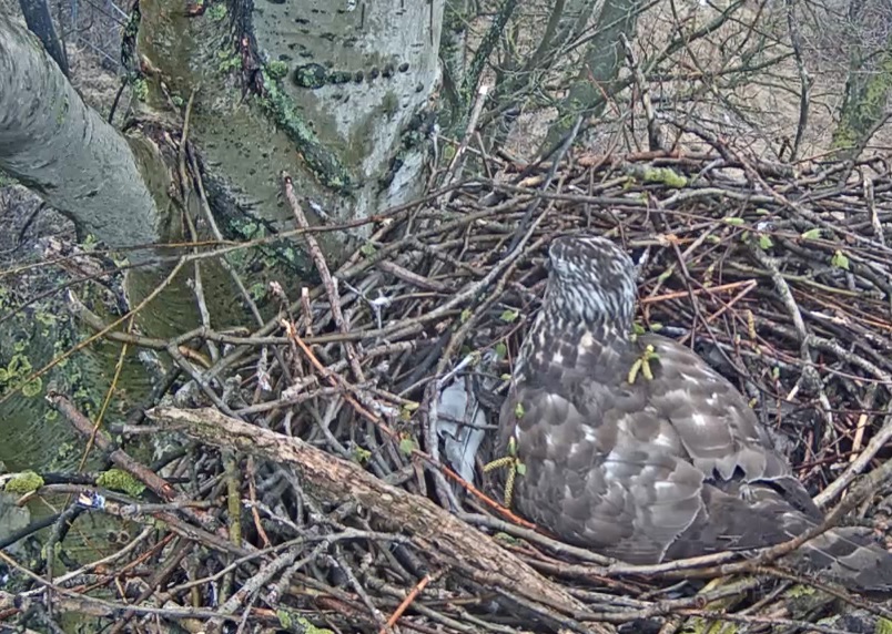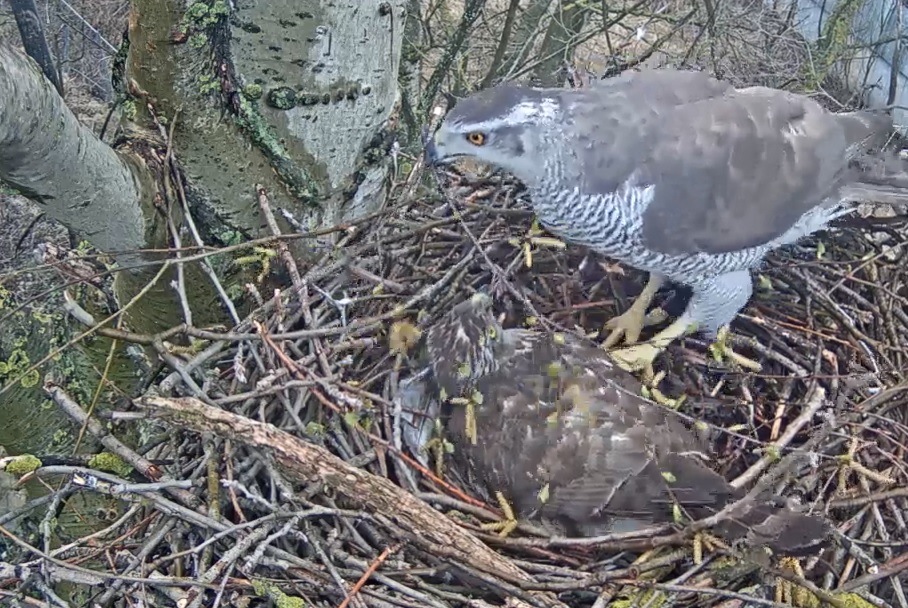 Goshawk Riga 2016 04 17 Misters Y on eggs, Margo with twig 2x, nice conversations., fleur3979