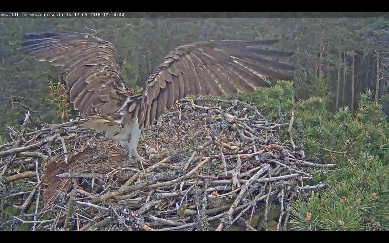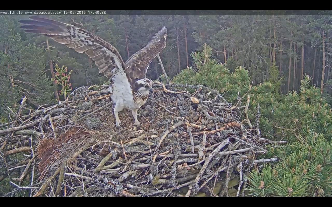 17:40 Laima pamet ligzdu, lai izlidotu loku pa apkārtni. Pēc brīža jau atpakaļ, lai turpinātu perēt.