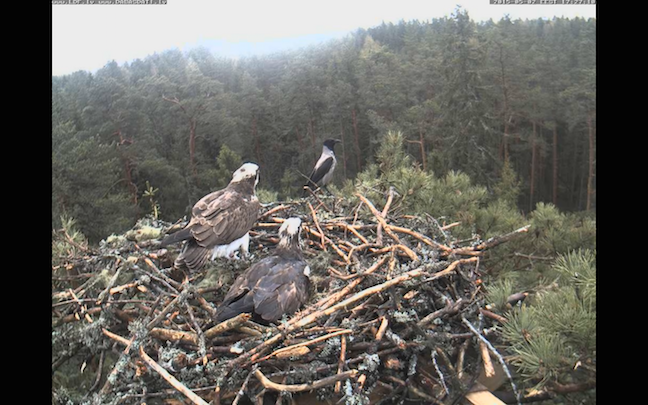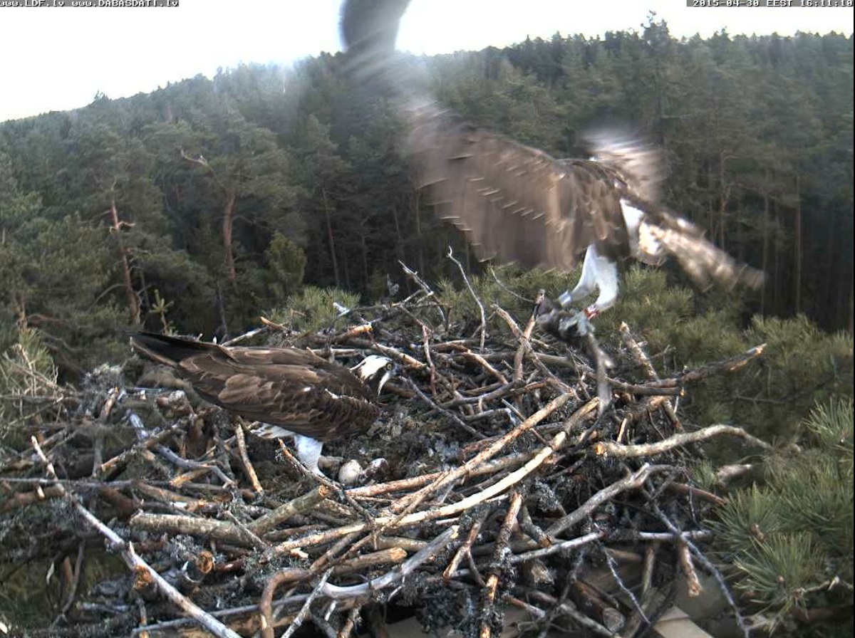 9.50 Abi divi ligzdā. Laima kaut ko stāsta, pēc brīža pieceļas un aizlido. Pēteris (kājas gredzenotas) paliek sēdēt uz olām.