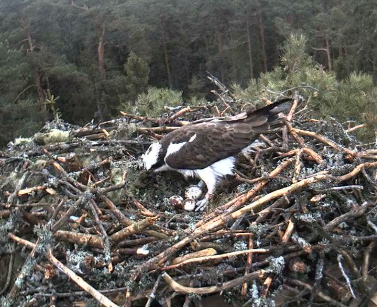 6.58 Atlidoja Laimiņa, Pēteris pieceļas no ligzdas un pabiksta kādu zivs skrandu... bet neredzēju, vai viņš to atstāja, vai paņēma līdzi...