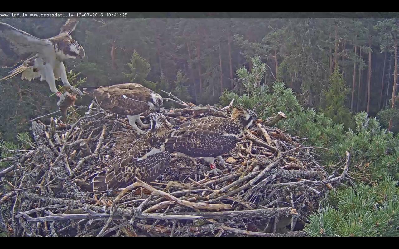 ...Laimiņa ir priecīga, ka bērns ir iemācījies to, ko viņa jau kādu labu laiku rāda un māca - spiegt cik spēka un pieprasīt, lai nes šurp uz ligzdu ņammu, un tad - paņemt no tēta nagiem zivi un to sargāt .