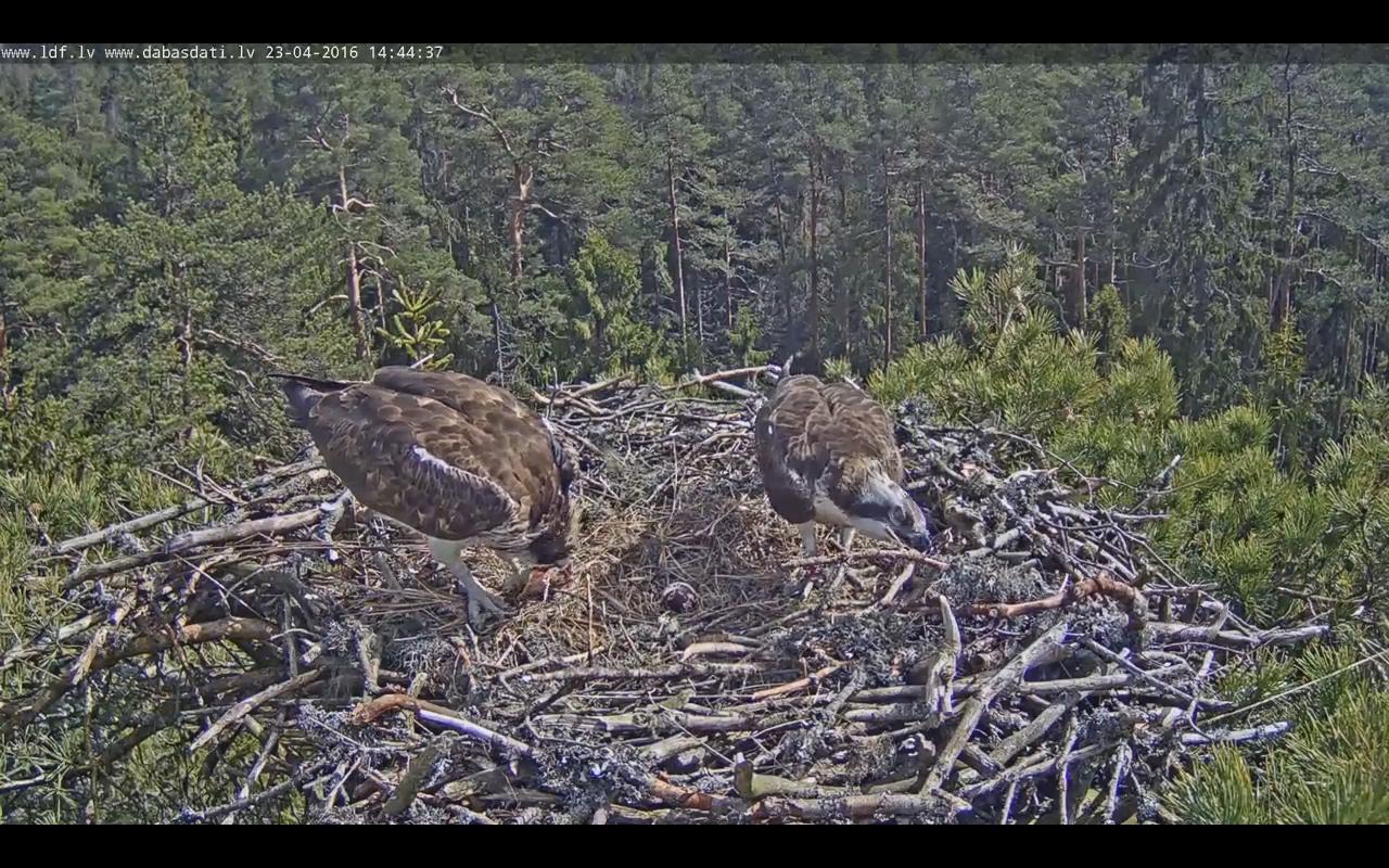 Piemēram, arī šajā ligzdā Igaunijā šogad tēviņš ir ievērojami lielāks par pagājušā gada tēviņu