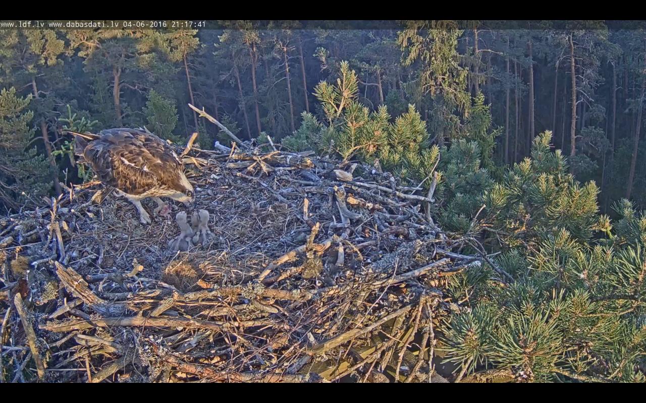 17:45 Jumis ielido ligzdā un pārliecinās, ka viss kārtībā. No iepriekš atnestās zivs nekas gandrīz nav atlicis, tāpēc Jumis odas gādāt sev jaunu zivi.
