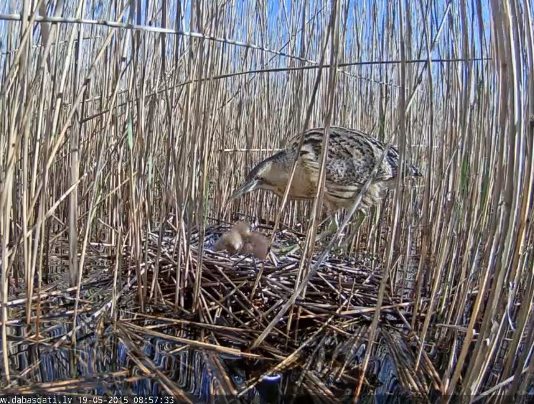 Viņai nākot, mazie snaikstīja kaklus un čiepstēja. Man izskatās, ka ir vēl trešais knābītiītis, bet nevaru galvot.
