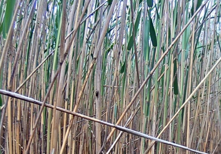 Выпь неспеша вернулась в заросли, а позже вышла ещё раз, опять у дальней стенки.