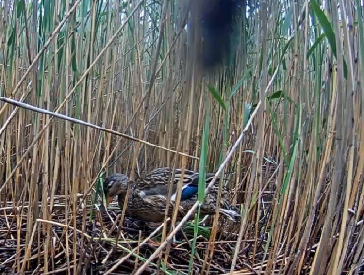 Izņemot gliemežus un kukaiņus, ligzdu apmeklē arī citas radības. Nupat bija pīle.