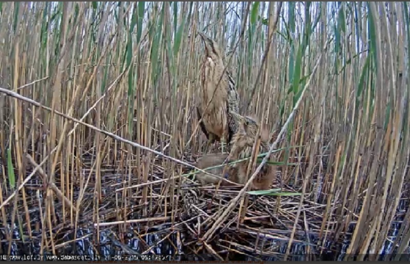 Dažas lietas, kas attiecas uz tuvākajiem plāniem saistībā ar kameru. Būtībā šobrīd gaidām kad dumpēni sāks izzināt teritoriju aiz ligzda robežām. Kā jau paši šeit forumā noskaidrojāt, jaunie putni pēc ligzdas atstāšanas tajā var vairs neatgriezties. Tomēr nevar izslēgt, ka dažādu lokālu apstākļu dēļ arī sugas ietvaros šī uzvedība var variēt. Tāpēc paskatīsimies un ar kameras noņemšanu nesteigsimies. Lidspēju dumpēni iegūst 50-55 dienu vecumā. Tātad, līdz tam tie būs „kājām ejamā attālumā” no ligzdas. Tā ka, iespējams, cāļus vēl redzēsim arī vēlāk atnākam uz ligzdu. Te gan jāsaka, ka ligzda atrodas salīdzinoši tālu no ūdens malas (iekšā niedru masīvā un tuvāk krastam), kas varētu būt labāka barošanās vieta, kur doties pēc ligzdas atstāšanas.