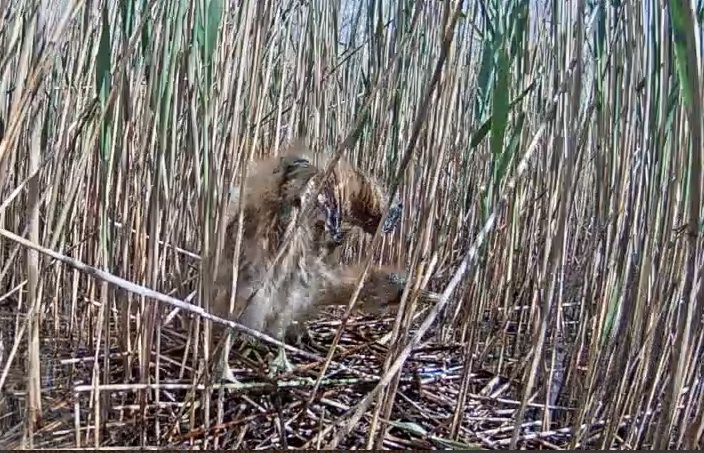 18:30 Ko sēdēsi bezdarbībā? Dumpiene ik pa brīdim staipa kaklu un paņem pa niedres gabaliņiem, kas tiek iekārtoti ligzdā