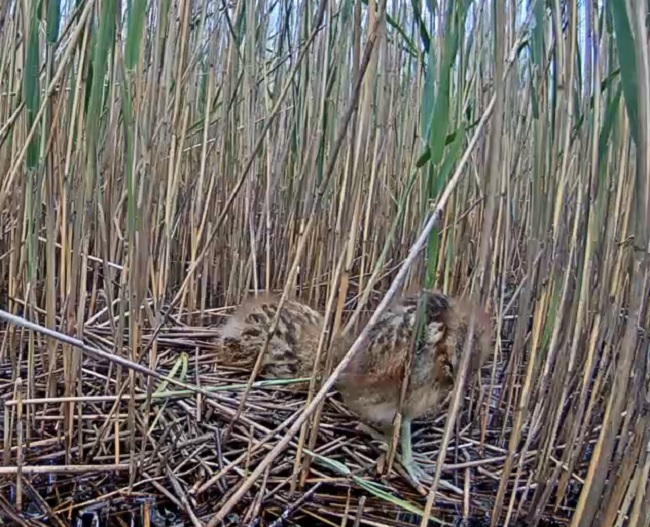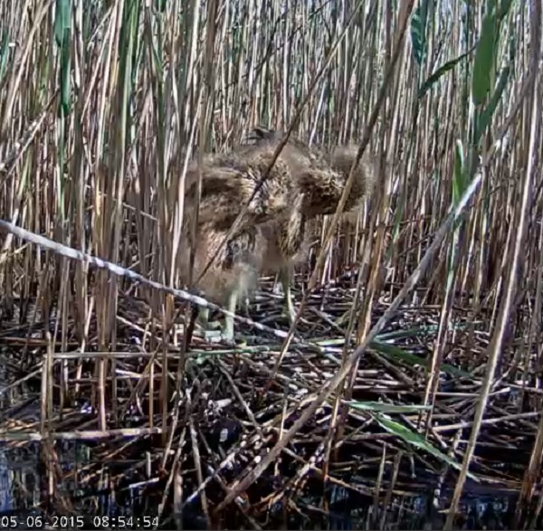 Dažas lietas, kas attiecas uz tuvākajiem plāniem saistībā ar kameru. Būtībā šobrīd gaidām kad dumpēni sāks izzināt teritoriju aiz ligzda robežām. Kā jau paši šeit forumā noskaidrojāt, jaunie putni pēc ligzdas atstāšanas tajā var vairs neatgriezties. Tomēr nevar izslēgt, ka dažādu lokālu apstākļu dēļ arī sugas ietvaros šī uzvedība var variēt. Tāpēc paskatīsimies un ar kameras noņemšanu nesteigsimies. Lidspēju dumpēni iegūst 50-55 dienu vecumā. Tātad, līdz tam tie būs „kājām ejamā attālumā” no ligzdas. Tā ka, iespējams, cāļus vēl redzēsim arī vēlāk atnākam uz ligzdu. Te gan jāsaka, ka ligzda atrodas salīdzinoši tālu no ūdens malas (iekšā niedru masīvā un tuvāk krastam), kas varētu būt labāka barošanās vieta, kur doties pēc ligzdas atstāšanas. Bet citādi -ligzdu apmeklēt un cāļus gredzenot nav plānots.