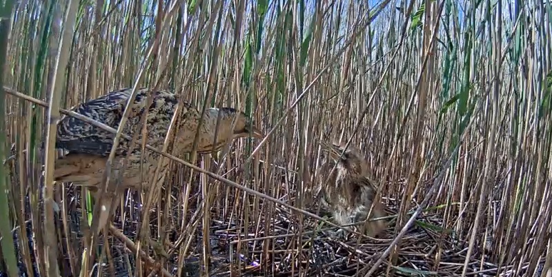 17:53 - ienāca ligzdā, atnesa baļķi, vēl piebūvē pa niedrei.