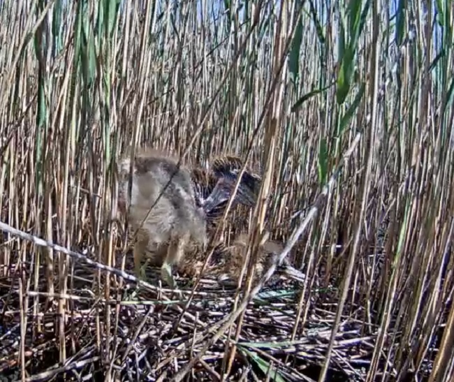 10:01 - Lielais (?) izvilka no ūdens divas niedras un iebūvēja tās ligzdā.