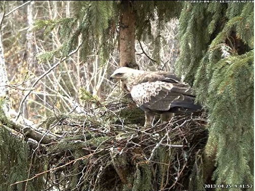 Man par patīkamu pārsteigumu ir rosība arī Stalidzānu ligzdā. Kameru uzstādījām 2.aprīlī, vienlaicīgi ar Mētras kameru. Pie Stalidzānu ligzdas abi ērgļi tika konstatēti jau 16.aprīlī, abi pārojās. Ērgļus šeit manīju arī pēc nedēļas, arī pārojās, taču ligzdu neapmeklēja. Man jau bija pārliecība, ka ērgļi netālu uzbūvējuši citu ligzdu, taču šis dienas notikumi vieš cerību, ka ērgļi ir izvēlējušies manis šogad būvēto mākslīgo ligzdu. Taču, lai nodrošinātu arī otras ligzdas tiešraidi, nepieciešams orts web serveris un vēl 4 akumulatori, apsvēršu iespējas.