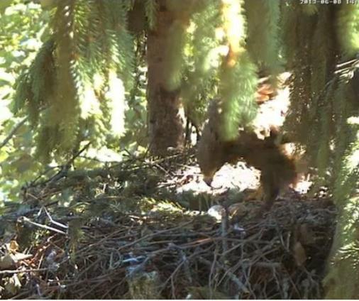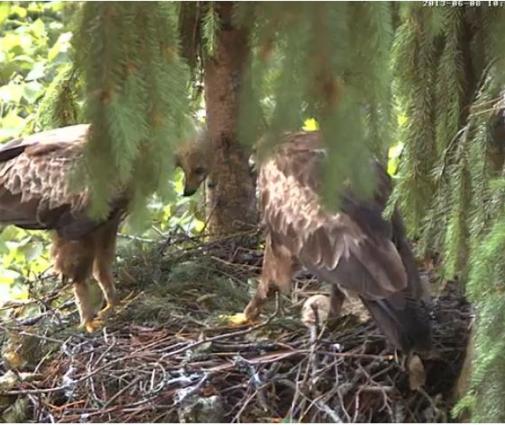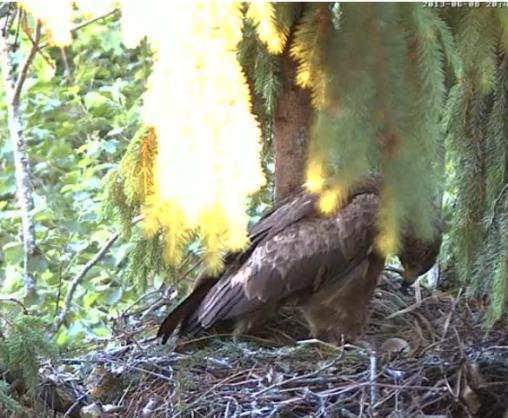 Šorīt uz brīdi Jūsu ekrānos bija tumšs, jo nomainīju akumulatorus. Šodien mūs gaida liels notikums - škiļas pirmais ērglēns, Mētra bieži grozās un pēta dējumu. Iespējams, jau vakarā ērglēns būs izšķīlies, vai arī pa nakti.