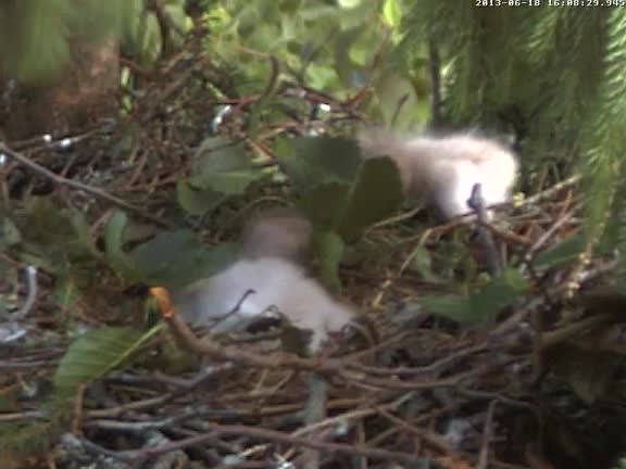Es joprojām ar cerībām par abu mazuļu izdzīvošanu... un tomēr, kā mainītos mūsu līdzjutēju domas, ja nepietiekamas pārtikas dēļ arī stiprākajam rastos problēmas ar izaugšanu un spēju sevi pasargāt pret citiem plēsoņām, un bojā varētu aiziet abi putnēni. No sērijas par mazākā ļaunuma izvēli.