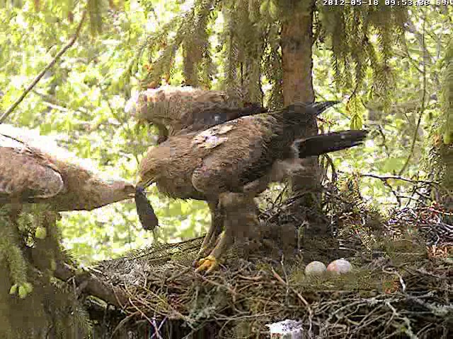 9:54 - atkal atkārtojās līdzīga situācija kā pirmīt. Mētra pielēca kājās, nolieca galvu uz priekšu un ar treļļiem sāka gaidīt atlidojošo Mačo. Tajā brīdī, kad kadrā parādījās Mačo spārns, tiešraide iestrēga uz sekundēm ~5. Pēc atjaunošanās vairs nebija redzams, vai kaut kas tika atnests ēst vai ne. Iespējams, ka kaut ko Mētra dabūja, jo uz brīdi viņa bija klusa, jādomā - rija atnesto peli.