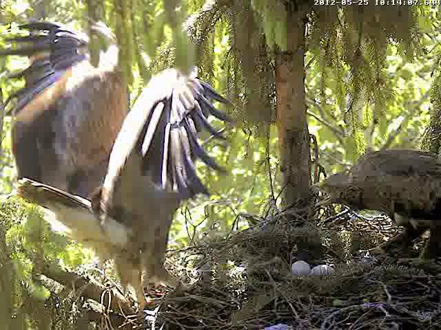 12:22 - Mētra uz mirkli prom no ligzdas, atgriezās, šķiet, ar mikroskopisku zariņu knābī.