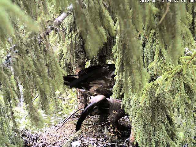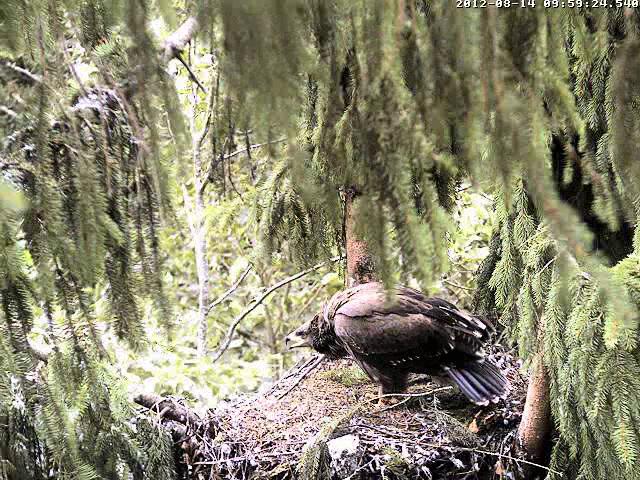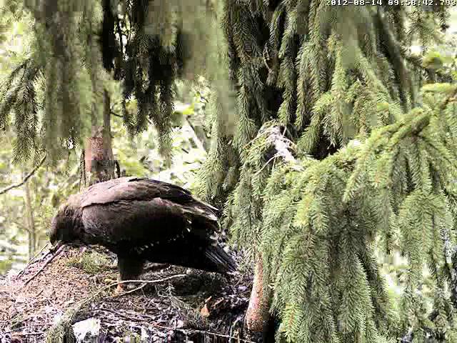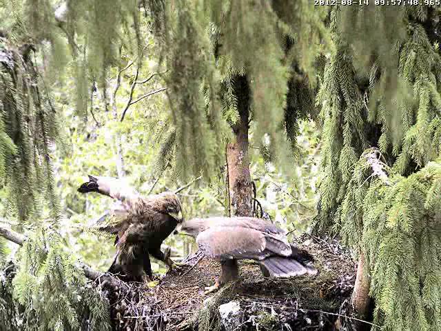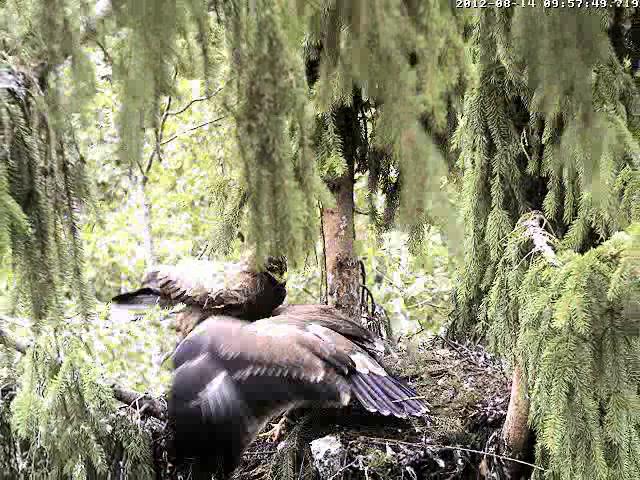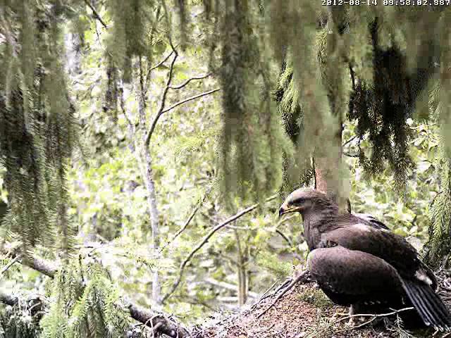 9:28 Ligzdā cauna!!! Atkal izstaigāja izošņāja un aizgāja uz Mika zaru.