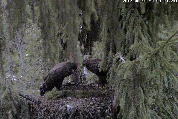 Cable Guy mums rāda tuvplānus. Būtu tik skaisti kadri ar abiem ērgļiem kopā, bet diemžēl ir jau ļoti tumšs.