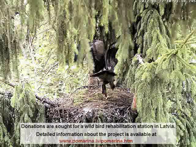 Notiesājis brokastis, notīrījis degunu, nedaudz pagrozījies ligzdā , 10:00 Miks aizgāja uz zaru. Nedaudz pačiepstēja un devās tālāk mežā savās dienas gaitās!