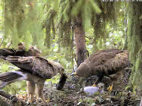 Mētra ber treļļus tik ilgi, kamēr Mačo ir blakus ligzdai, šoreiz viņš minūtes 2 sēdēja ligzdā un skatījās uz savu atvasi, pēc tam ilgi sēdēja uz zara ārpus kadra. 9.47 varēja redzēt aizplīvojam Mačo spārnu un Mētra tūlīt pat apklusa.